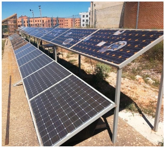On-site outdoor tests have been performed in the PV installation in the School of Forestry, Agronomic, and Bioenergy Industry Engineering (EIFAB) of the University of Valladolid, in Soria, Spain. It is shown in the upper row of PV modules in Figure 6. It is composed by eleven mono-crystalline PV modules with different kinds of defects. Their main characteristics are presented in Table 1. The area of each cell is 156.25 cm2.