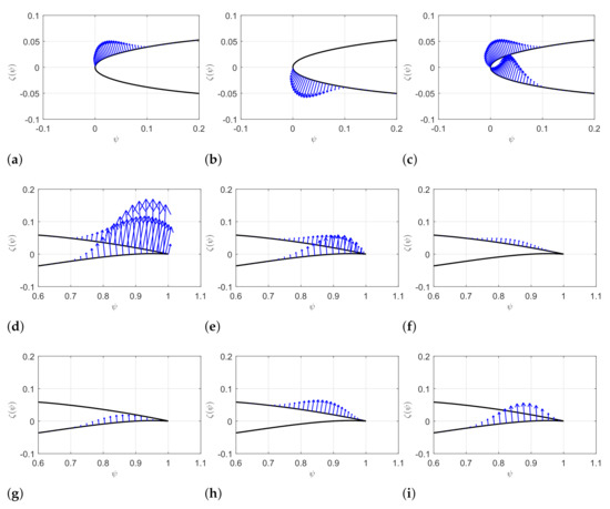 The remaining CST coefficients are obtained by solving the inverse fitting problem Equation (7) so that the curves always attach the wing-box. Let be the points in the subset space of airfoil , where subscript stands for box. The morphing part of airfoil is indicated by subscript . In other words, the chord-wise coordinate of distinct points is located from to , where and represent front and rear spars of the wing-box. Those locations of wing-box points are known to the designer as morphing always starting from a baseline airfoil. Meanwhile, the coefficient vector is partitioned into , in which the subsets and represent box and perturbed aerodynamically driven terms, respectively. Consequently, the inverse fitting problem to solve is adjusted to