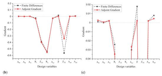 In the following subsections, the gradient verification is shown first. Subsequently, three optimization cases are shown: morphing only the leading edge, then the trailing edge, and finally, the leading and trailing edges.