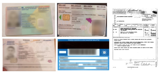 In this way, we built a private dataset composed of 412 images representing personal documents: Fiscal Codes, Identity Documents, Driving License, Passports, and Other Images that can occur in the maritime application domain. The Driving License are then fused in the more general Identity Documents category.