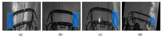In this paper, a parameter adaptive contact point tracking and positioning method has been proposed, and the results are shown in Figure 7. Through the positioning module, discriminator, and parameter feedback update, the closed-loop control of the train under long-term outdoor operation is ensured, and fast and stable contact point positioning is achieved. For the selection of the L1 discriminator, the discrimination range was set to 12–30 according to the datasets, and the slope of the contact line was made following judgments to improve the operation effect of the L1 discriminator. The hash discriminator was determined according to the 50 × 100 tracking area, and a corner patch using the 32 × 32 area around the contact point was used as the hash comparison patch. Through both discriminators, the effective feedback update of the algorithm was achieved, which greatly improved the algorithm’s performance and stability under long-term train operation. In the following ablation experiments, the advantage of the contact point closed-loop frame is demonstrated.
