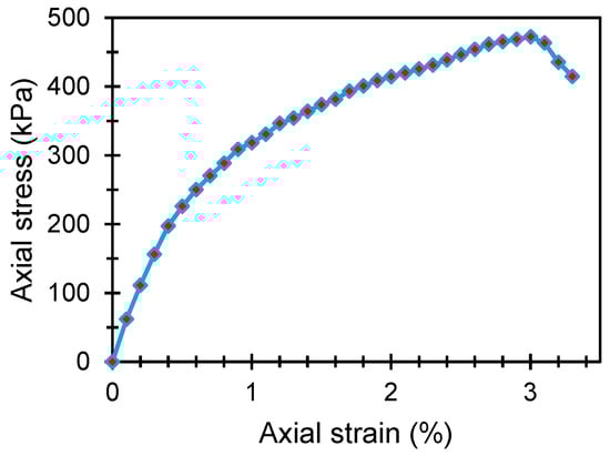 An example of some axial stress–strain relation curves of the soil–cement mixture.
