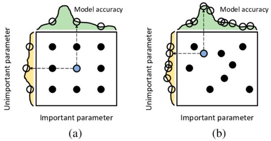 Comparison between (a) grid search and (b) random search for hyper-parameter tuning [50].