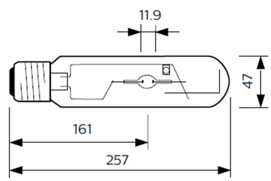 - Philips. Product Datasheet: MASTER Colour CDM-T MW eco/360 W842 E40. Available online: http://www.lighting.philips.it/api/assets/v1/file/content/fp928070319230-pss-it_it/928070319230_EU.it_IT.PROF.FP.pdf (accessed on 29 July 2020).