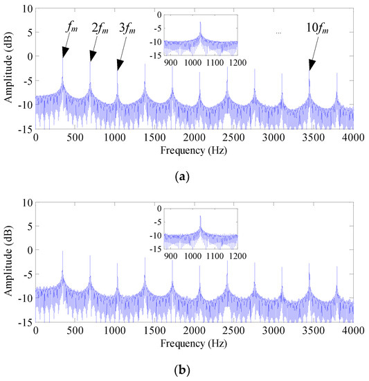 where A represents the amplitude of the ith side frequency on either side of the harmonic frequency fm. k denotes the number of side frequency.