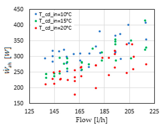 - The water flow rate was fixed because the chiller turns off if the flow rate is reduced. Therefore, the subcooling degree could not be adjusted at the condenser outlet using the water flow rate; instead, it was affected by the initial mass charge of the system.