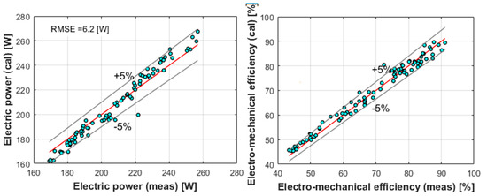 Instead, the pump volumetric efficiency shows high values as presented in Figure 5. Despite being penalized in higher flow rates (and therefore higher rotational speeds) due to an increment in the internal leakage, the good volumetric efficiency shows the high quality of the pump sealings during the tests.