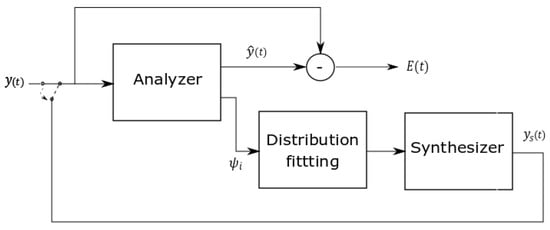Figure 3 shows an overview of the analysis and synthesis combined with parameter distribution fitting. First, the analyzer models the natural GAW (input) using an analysis-by-synthesis approach, which is described in Section 2.2. A Fourier synthesizer is used to obtain the modelled GAWs . The modelling error is obtained from the root mean square error between the input GAW and the modelled GAW . The modelled GAW is refined iteratively to obtain a minimum modelling error. Parameters of the input GAW are also estimated during the modelling process. Distributions of estimated parameters of the input GAW are fitted as described in Section 2.3 for the purpose of generating the synthetic corpus, which is larger than the corpus of the natural GAWs. Section 2.4 explains the Fourier synthesizer in detail. The synthetic GAWs are again input into the analyzer. The modelling errors obtained for the natural and synthetic GAWs are used for the classification of the positive and the negative group. In Section 2.5, the features and classification are explained.