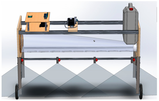 The CAD model (Figure 1) shows the design and the overall structure of the test bench manufactured for quantitative evaluation of the proposed solution.