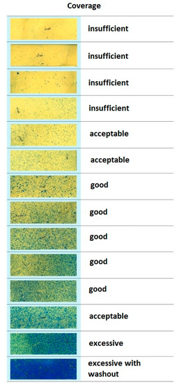 Figure 4. Degree of coverage of water sensitive papers [19]. - Coverage in liters per hectare should be as low as possible.