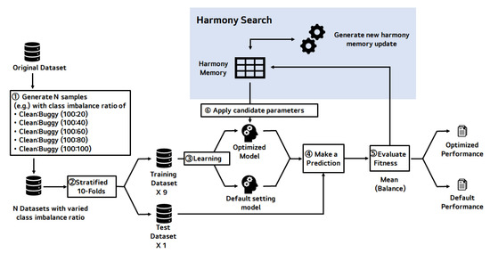 Figure 5 is the overall process of the proposed HS-based parameter optimization for JIT-SDP. The process consists of two parts: updating harmony memory and getting fitness values.
