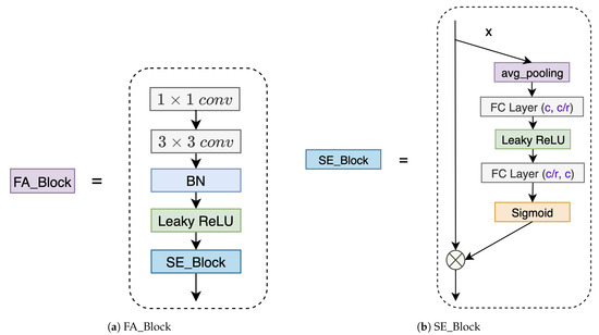 An illustration of Focusing Attention (FA) block as (a) and Squeeze-and-Excitation (SE) block as (b). FA block consists of depthwise separable convolution and SE block, the latter’s architecture is shown in (b).