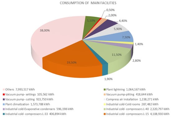 4]. Electricity consumption is mainly used for cooling and ventilation, while fossil fuels such as natural gas or diesel are generally used for process heating. In the meat industry, refrigeration production and distribution constitute between 45% and 55% of the total final electricity consumption on weekdays [