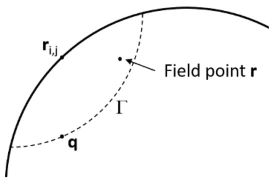 where q is a point inside the solid body, sufficiently far from the surface (Figure 2). The term [u(rij; r) and u(rij; q)] was evaluated using the surface integral approach, and u(rij; q), was obtained from FE.