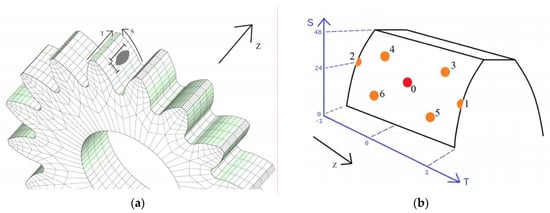 In the present work, the presence of damage on the surface was modeled by selecting the position (radial and tangential coordinates S and T) on the teeth flank (Figure 7), the main diameters of the pits (intended as an ellipse), and their depths.