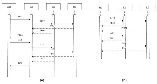 - Smith, R.G. The Contract net protocol: High-level communication and control in a distributed problem solver. IEEE Trans. Comput. 1980, 29, 1104–1113. [Google Scholar] [CrossRef]