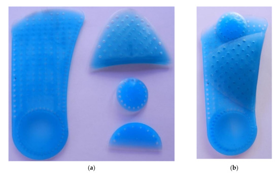 There is a wide variety of prefabricated plantar orthoses on the market, the majority of the designs of which have the characteristic of being one-piece systems, cushioned in a specific area and with predetermined fixed supports. The disadvantage of the prefabricated systems is presented in the area of the orthosis where the support has been predetermined, due to the fact that, in many cases, it does not coincide with the plantar region that the patient requires to be attended to. Therefore, clinical professionals believe that a custom-made orthosis has a greater chance of performing the desired function, provided that it is manufactured based on individualized requirements according to the morphology of the foot and the condition to be treated [11]. In addition, custom-made systems can satisfy the great variability of design specifications required by health professionals in the absence of guidelines regarding the prescription of plantar orthoses [5]. However, custom-made orthoses also have disadvantages. Firstly, its manual manufacturing process long and laborious, and the skill and experience of the orthotist is the influential factor in ensuring that the orthosis has the prescribed technical characteristics [12]. Secondly, there is the competitive disadvantage in relation to its cost compared to prefabricated orthoses, whose standardized manufacturing processes allow time and cost optimization [13]. In view of the dilemma of choice between the two types of orthosis for the treatment of certain pathologies, studies have been conducted that conclude that no significant difference is found between custom-made and prefabricated orthoses [14]. The aforementioned issues validate the functionality of prefabricated orthoses for the treatment of certain conditions, implying access to an alternative solution at a lower cost.