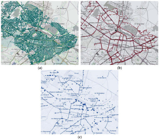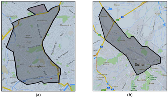 The correctness of the traffic infrastructure model and its primitive scalability are assessed by verifying the number of created software agents, which represent road and public transport segments. The agents’ initiation logs and console printouts enable checking the conformity of the agents created with the actual number of road and public transport segments retrieved from the static maps of our trial cities, namely Nottingham (United Kingdom) and Sofia (Bulgaria). Overall, we modeled approximately 4900 road segments, 267 bus segments, and 15 tram segments in the city of Nottingham, and 8440 road segments, 401 bus segments, 118 trolleybus segments, 157 tram segments, and 18 metro segments in the city of Sofia. These segments exclude service and residential roads.