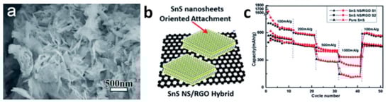 - Kang, J.-G.; Park, J.-G.; Kim, D.-W. Superior rate capabilities of SnS nanosheet electrodes for Li ion batteries. Electrochem. Commun. 2010, 12, 307–310. [Google Scholar] [CrossRef]