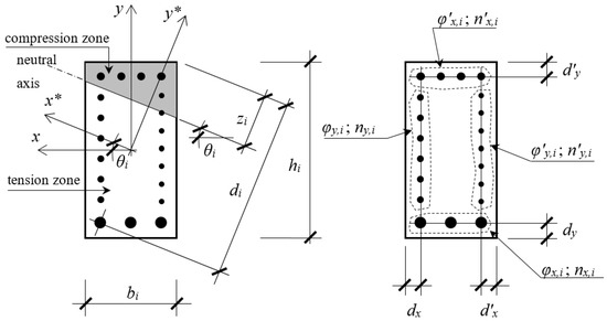- Gil-Martín, L.M.; Hernández-Montes, E.; Aschheim, M. Optimal reinforcement of RC columns for biaxial bending. Mater. Struct. 2010, 43, 1245–1256. [Google Scholar] [CrossRef]