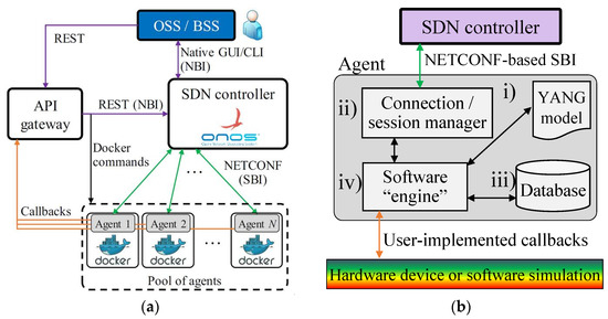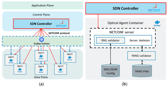 - Iglesias-Castreno, I.; Alabarce, M.G.; Hernandez-Bastida, M.; Marino, P.P. Towards an Open-Source Framework for Jointly Emulating Control and Data Planes of Disaggregated Optical Networks. In Proceedings of the International Conference on Transparent Optical Networks (ICTON), Bari, Italy, 19–23 July 2020. [Google Scholar]