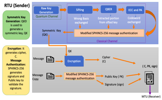 We assume that the Remote Terminal Unit (RTU) is the sender, and Master Terminal Unit (MTU) is the receiver. The key generation phase exhibits the B92 protocol, which comprises of the following sub-phases to generate a secret key, using quantum and public channel [11,34].