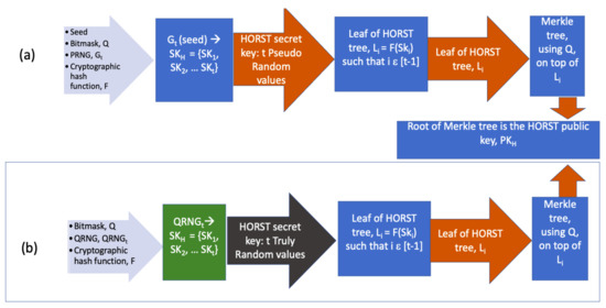 - In general, SPHINCS-256 uses a Pseudo-Random Number Generator (PRNG) based on Chacha-12 to generate a secret key of the HORST tree. However, to increase the security of SPHINCS-256, we introduce QRNG to obtain a non-deterministic and truly random HORST secret key.