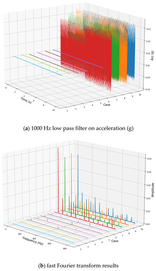 The 1000 Hz low pass filter on acceleration and fast Fourier transform (FFT) results.