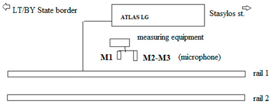 1.1. The noise meter was placed next to the ATLAS LG system (distance from the rail head edge—2.5 m and the height is at the same level as the rail head);