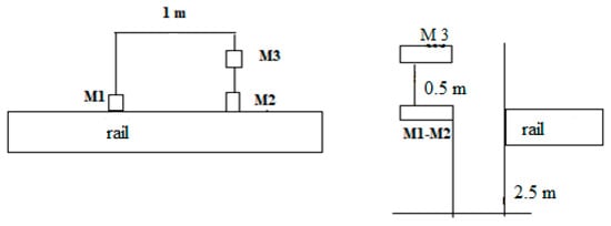 Figure 4. Microphone layout diagram. M1—microphone 270029; M2—microphone 190590; M3—microphone 186157