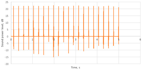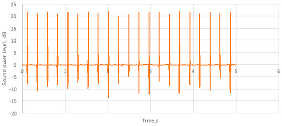 Sound pressure change data and their peaks must be filtered by the periods of their repetition, which is calculated using Equation (1).