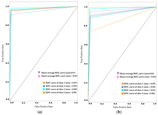 This study also generated receiver operating characteristic (ROC) curve plots to demonstrate the tradeoff between sensitivity and specificity. A possible increase in sensitivity, accompanied by a decrease in particularity was observed in the proposed framework before and after new class arrival, as depicted in Figure 8a,b. The ROC curve was closer to the left-hand border and the top edge of the ROC space. This shows the true positive rate vs. the false positive rate. In model1_SD, the obtained ROC curve was desirable in both cases, as shown in Figure 11.