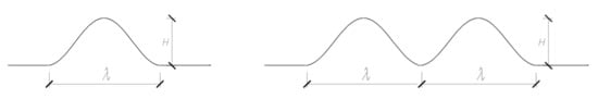 In order to eliminate the interference of the initial disturbance and ensure that the aircraft maintains a smooth taxiing state before encountering excitation, we set a 500-m buffer zone in front of the single cosine excitation. Then, we calculated the elevation data of the runway profile and input those data into the pavement file for simulation. Figure 7 presents a schematic diagram of a single bump and multiple bumps excitation (bulge) represented by cosine functions.