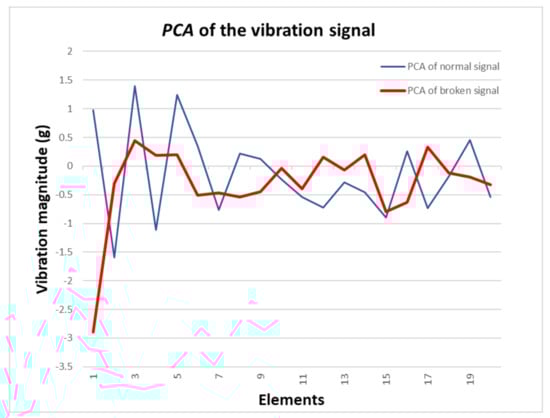 Principal component analysis (PCA) in g_x direction of the normal and broken machine.