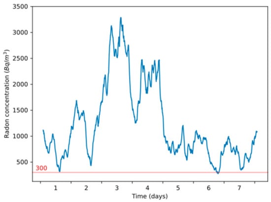 - Requisite 2: the prediction algorithm uses the radon concentration as the measure of the air quality. We chose the radon concentration as the air quality measure because high radon concentrations cause health problems [,,,]. Radon has a notable incidence in Spain, especially in Galicia, where we carried out this work, caused by its strongly linked to granite geology, the primary source of radon emissions [,].