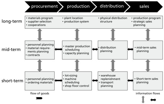 - Fleischmann, B.; Meyr, H.; Wagner, M. Advanced planning. In Supply Chain Management and Advanced Planning; Stadtler, H., Kilger, C., Meyr, H., Eds.; Springer Texts in Business and Economics; Springer: Berlin/Heidelberg, Germany, 2015; pp. 71–95. [Google Scholar]