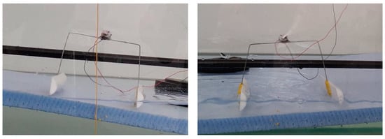 The differences between numerical and experimental data in Figure 9, Figure 10 and Figure 11 are mainly due to all the simplifying assumptions (detailed in Section 4), the disturbance forces related to the electrical cables of the motor, and the effect of the small waves present in the experiment, which are not considered in the numerical model. The overlap between the experimental points and numerical curves could be improved by using computational fluid dynamics to simulate the flow around feet for different relative velocities and angles, or by using experimentally determined drag and lift coefficients. However, these activities are beyond the scope of the present work.