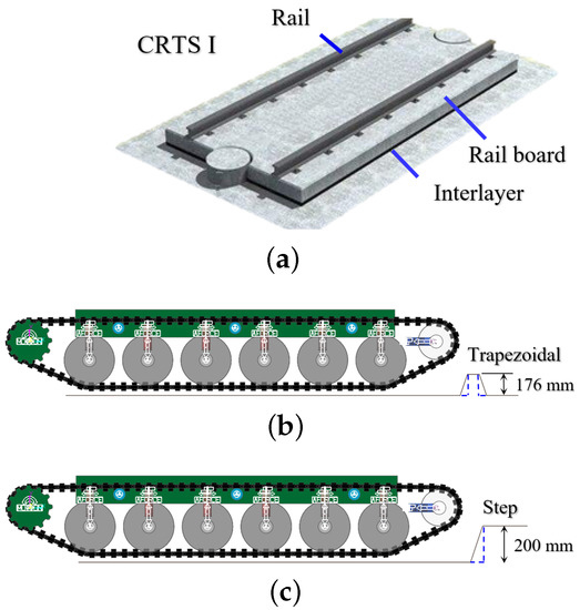 Road surface establishment (a) CRTSI railway (b) Trapezoidal barrier (c) Step Barrier.