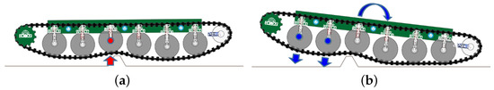 Tracked chassis suspension status in two operation modes (a) Rail operation mode (b) Road operation mode.