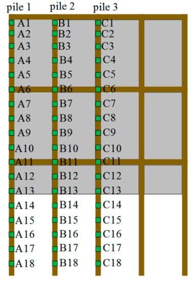 The layout of the strain gauges installed on the retaining piles.