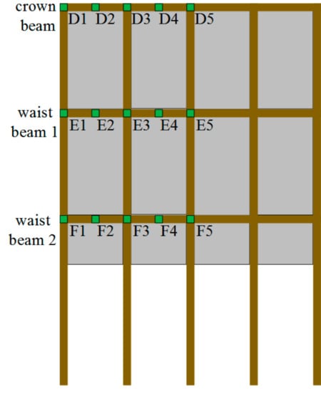 The layout of the strain gauges installed on the crown beam and the waist beams.