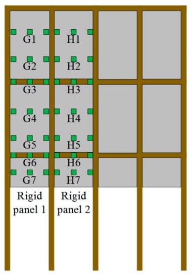 The layout of the strain gauges installed on the rigid panels.
