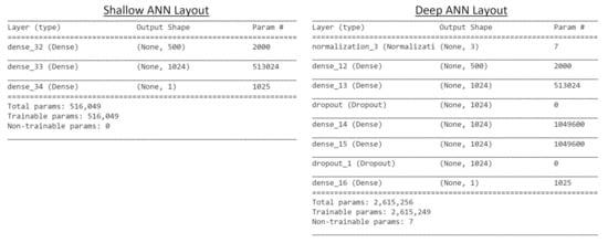Layout summary of our ANN designs, shallow ANN (left), and deep ANN (right).