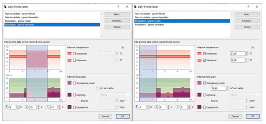These lacks can be used as a starting point for further improvements to the tool. The possibility to set the vapor diffusion resistance factor of the materials would improve the calculation of possible surface and interstitial condensation. Regarding a more precise analysis, the tool could be improved by giving the possibility to set the efficiency of the boiler and the emission system characteristics and typology and to detail the parameters to be inserted regarding the nominal capacity, the thermoregulation, and the COP/EER. Finally, some details about the lighting system and mainly the control system should be added.