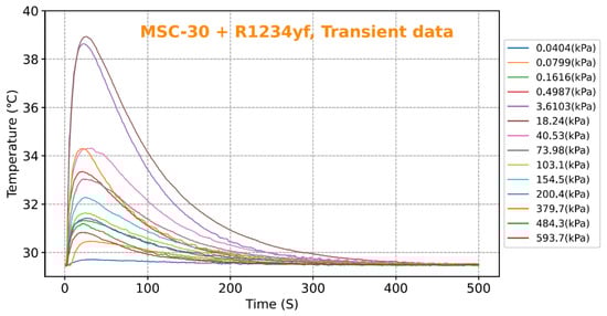 The transient temperature of MSC-30/R1234yf pair at adsorption isotherm (30 °C).