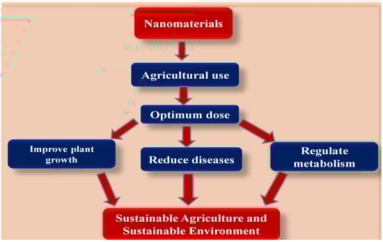In summary, the literature shows that food demands will increase with time, and to fulfill the demand of people, the present agricultural practices are not sufficient and chemicals used in agriculture as pesticides have a severe toxic effect on the environment. Thus, we need to develop an alternative approach that has a less toxic effect on the environment and that could help in fulfilling food demands. According to estimates, around 192.8 Mt chemical fertilizers were used in 2016–2017 in the whole world. The use of toxic chemicals and pesticides causes environmental pollution, which affects fauna and flora. Pathogens and pests induce resistance against fungicides and pesticides. Hence, optimizing of the use of toxic chemical pesticides and fungicides is needed. Nanotechnology is flamboyant and has provided nanostructure materials as pesticide and fertilizer carriers. Nanomaterials can develop smart fertilizers as they can enhance nutrient availability and reduce environmental pollution [123]. Novel nanotechnology can be an alternative that can reduce crop diseases and enhance crop yield. Previous studies reported a significant positive effect of nanomaterials on crop plants. This novel technology can reduce the use of toxic chemicals and pesticides that contaminate soil, the environment, and groundwater. Further research is needed to develop this technology on a large scale (Figure 4).