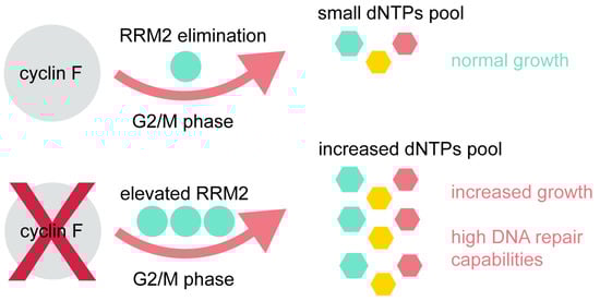 The cyclin F–RRM2 axis is essential for genome stability and DNA repair. The defective elimination of RRM2 drives to elevated DNA pool and increases the cell capability to DNA repair. This can lead to uncontrolled proliferation and drug resistance.