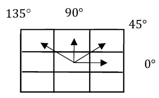 Generally, the orientation for 2D GLCM is considered for four independent directions which are given in Figure 2. Table 1 shows the corresponding displacement vectors.