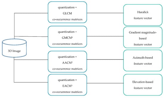 We proposed in the preliminary work [29] an improved version of the 3D GLCM, the IGLCM_3D. The functional diagram is given in Figure 6.