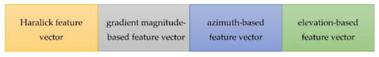 For building the two orientation-based feature vectors, this entropy indicator is computed for all AACM and EACM matrices and the same fusion strategy as for GLCM is used. The final azimuth-based feature vector contains four characteristics and the same is valid for the elevation-based feature vector.